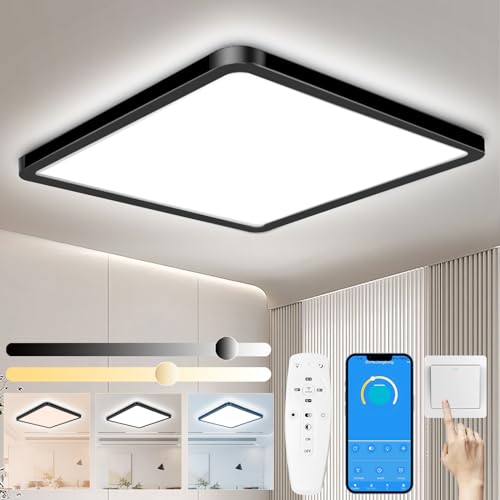 Yexati Plafonnier LED Dimmable 24W, Luminaire Plafonnier Tél...