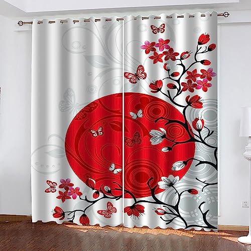Rideau Salon,Rideaux Occultants De Fleurs Rouges De Pleine L...