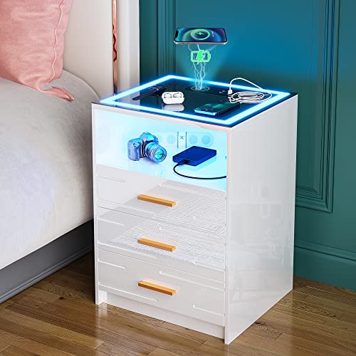 Table de Chevet à 3 tiroirs, Table de Chevet Intelligente à...