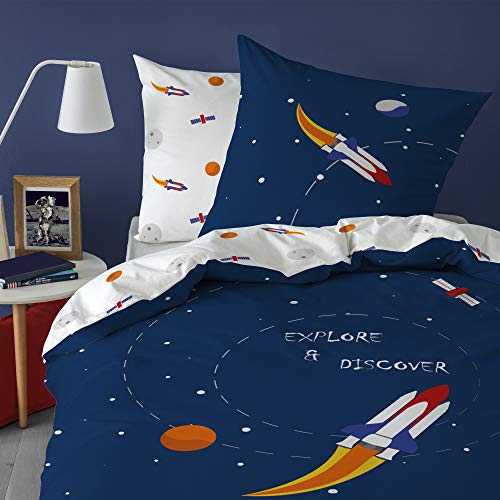 MATTE ROSÉ Parure d'Exploration Espace Lit Enfant 140x200 cm...