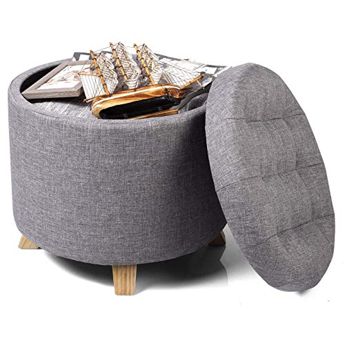 Repose-Pieds Robuste Pouf Rangement Coffre Rond Chaise rembo...