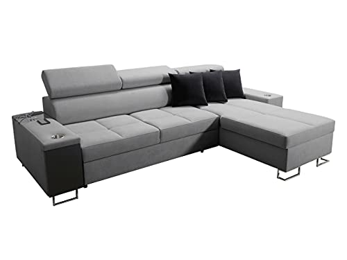 Canapé d'angle Domiko I Mini avec lit et coffre, appuie-tête...
