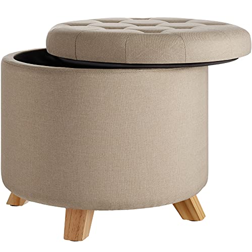 Tabouret rond coffre de rangement repose-pied rembourré lin...