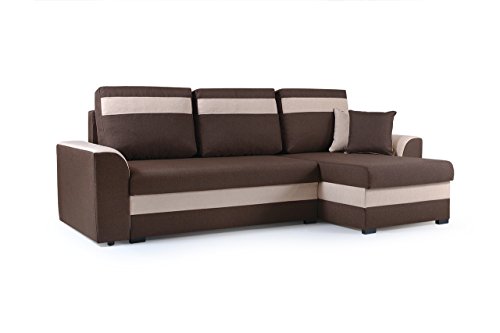 Canapé d'angle Domiko I Mini avec lit et coffre, appuie-tête...