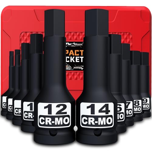 11 Pièces Douille a Choc 1/2, 10-24mm Coffret Douille Longue...