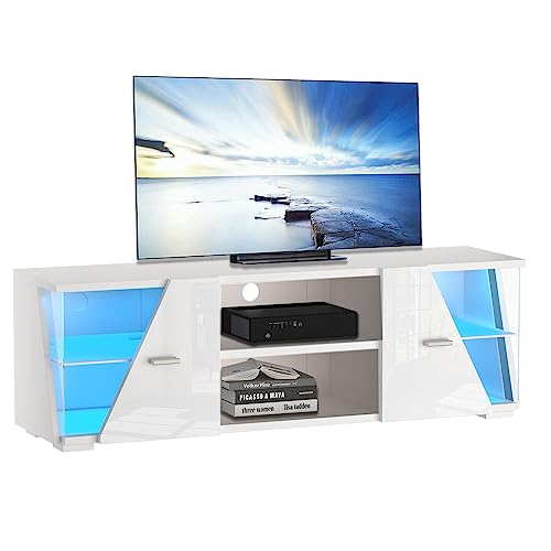 Fest-night Armoire TV Moderne LED Blanche 90x35x40 cm
