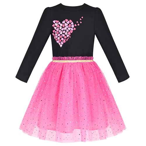 Robe Fille Noir Cœur Rose Sequin Tulle La Saint-Valentin