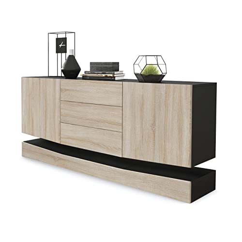 Vladon Commode Buffet Pino V2 Anthracite Noir
