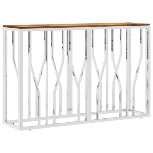 vidaXL Table Console argenté Acier Inoxydable et Bois Massif...