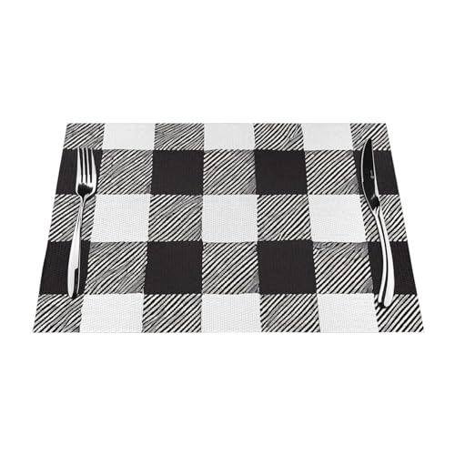 Matériau : sets de table imprimés à carreaux noirs et blancs...