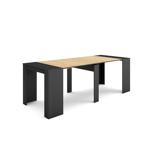 Table Console Extensible Skraut Noir et Chêne 220 pour 10 Pe...