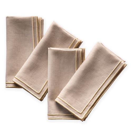 Lot de 4 serviettes de table lin 100% naturel, lavables en m...