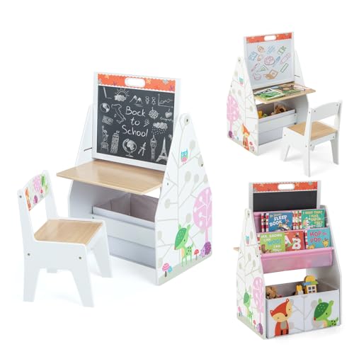Dreamade Table Enfant Double Face, Réglable, Bibliothèque 3...