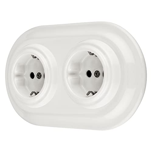 Prise de courant encastrée porcelaine rétro 2 prises All-in-...