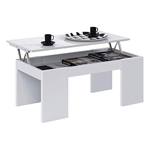 Table Basse Surélevée, Finition Blanc, Modèle Kendra, Dimens...