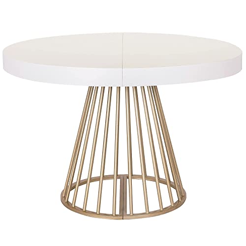 Table Ronde Extensible Dorée Style Industriel Marbre Blanc 1...