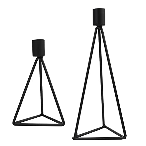 Lot de 2 Candélabres en Métal Géométrique, Chandelier Bougeo...