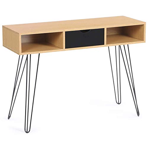 Console vintage NOEMI contour bois tiroir noir pieds épingle...
