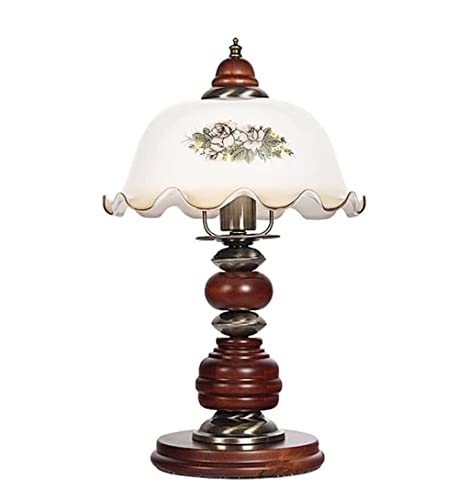 Lampe de table, fond rond bois massif antique pétale abat-jo...