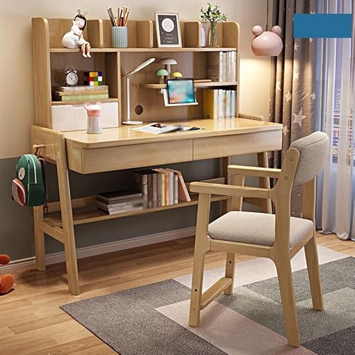 AAMNA Bureau Bois Massif avec tiroirs et étagères, Bureau d'...
