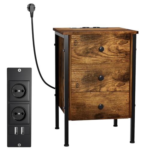 【Table de Chevet Avec Prise】Table de chevet rétro marron e...