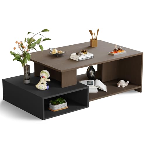 ROYGBIV Table Basse Bois, Table Basse Industrielle Bois Noir