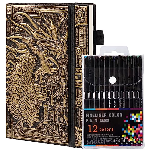 Dragon carnet à pois en cuir 12 couleurs, A5 relief, couvert...