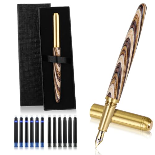 Amaxiu Stylos Plume Vintage en Bois, 6 cartouches noires et...