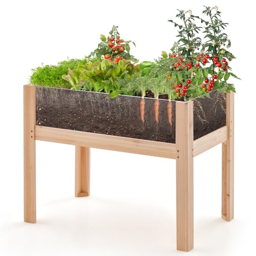 GOPLUS Potager sur Pieds, Carré, 50L, Drain, Plantes Mobiles