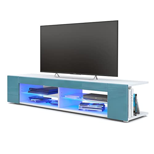Buffet TV Vladon, Compartiments Ouverts, Blanc Mat/Turquoise...