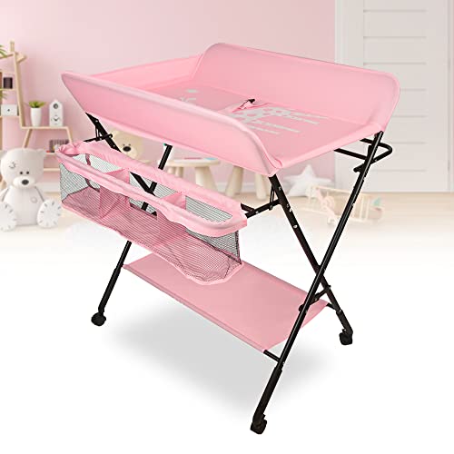 Table à langer pliante, pliant avec rangement, sécurité et 4...