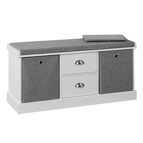 FSR37-W Banc de Rangement avec Coussin et Étagères