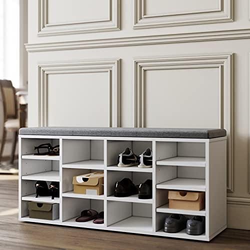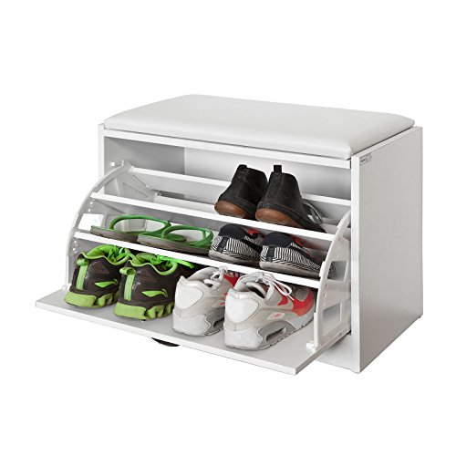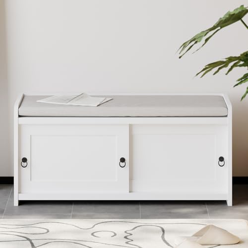 SIRHONA Armoire à Chaussures Blanc avec Coussin de Siège 103...