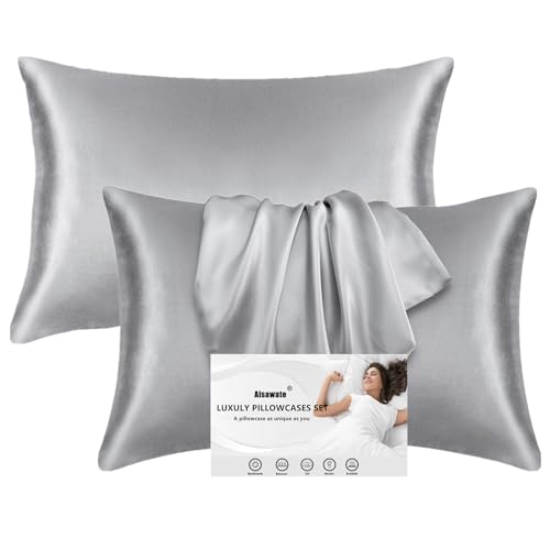 Lot de housses de coussin satinées 100% soyeuses bleu foncé,...
