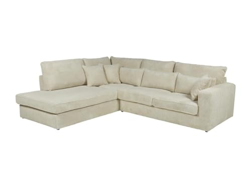 Canapé d''angle en velours côtelé Crème - Angle gauche - Vel...