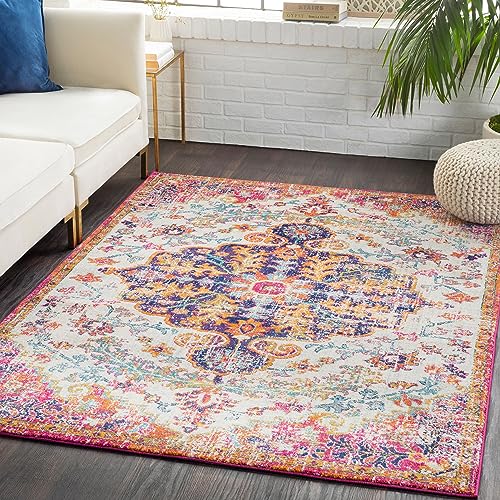 Surya Sicily Vintage Boheme Multicolore Tapis Coloré Poil Co...