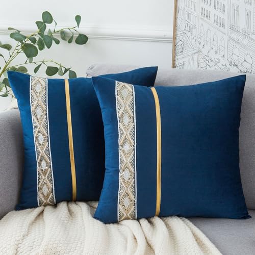 Housses Coussin Canapé Bleu Marine Velours 40x40 cm Rayures...
