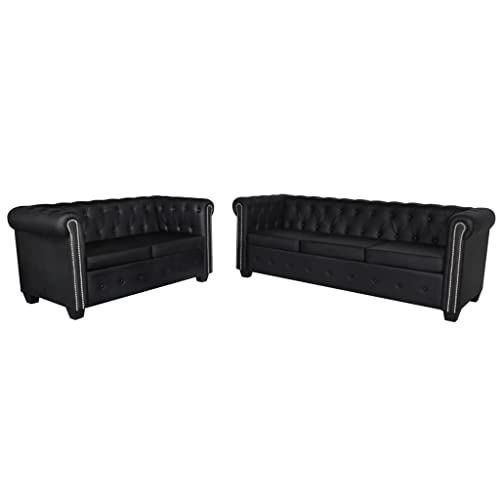 vidaXL Canapé Chesterfield de 2 Places et 3 Places Noir Mobi...