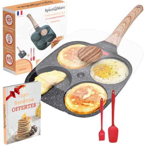 Spicemate Poêle à Pancakes avec Couvercle, Antiadhésif, 4 Em...