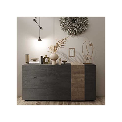 Tousmesmeubles Gris/Chêne Noisette Buffet 2 Portes 3 Tiroirs...