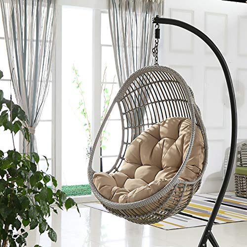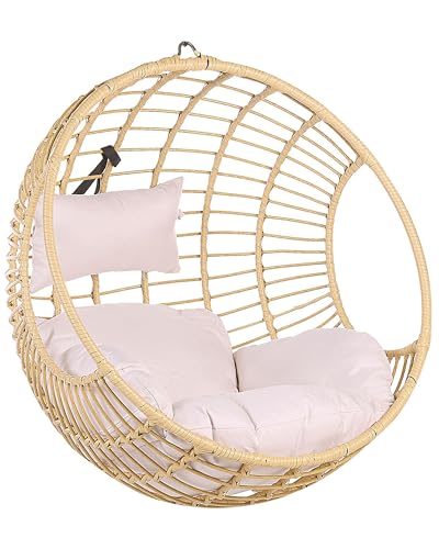 Fauteuil Balancelle Suspendu en Forme d''Oeuf en Rotin Beige...
