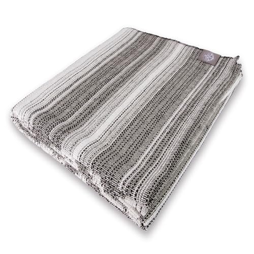 Couverture Yara 100% coton rayures noires et grises 170 x 22...