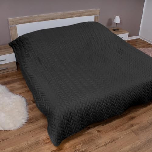 Couvre-lit (noir) - 220 x 240 cm - Avec doublure matelassée...