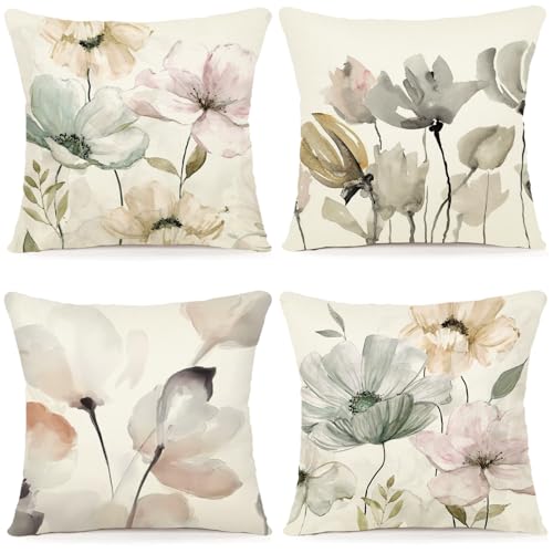 ZWJD Lot de 4 Housse Coussin 50x50 Florale Peinture à l''aqu...