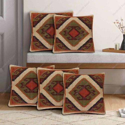 Handicraft Kilim Lot de Coussin Housses Jute Laine 45,7 x 45...