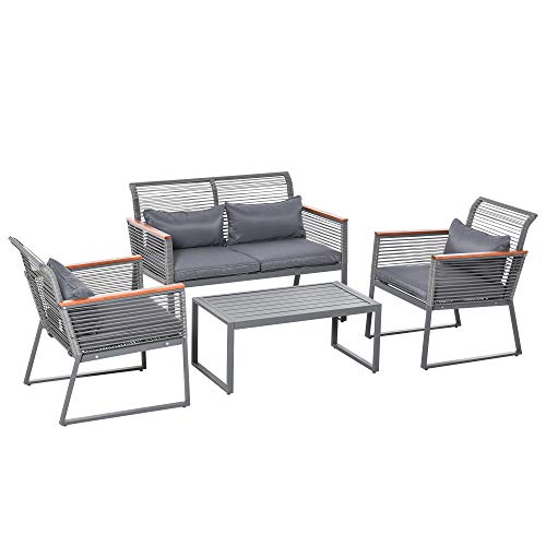 Outsunny Salle de Jardin Design Contemporain 4 Places Coussi...