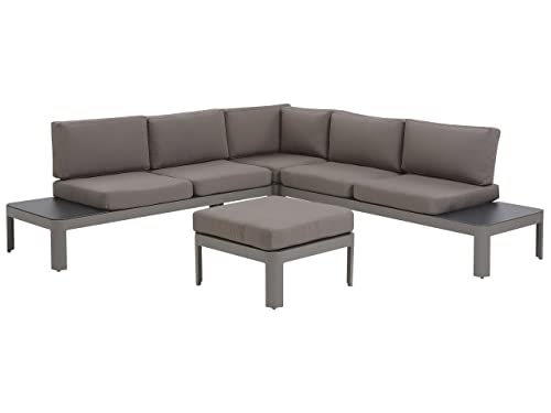 Salon de Jardin 5 Places en Aluminium Gris avec Coussins Deh...