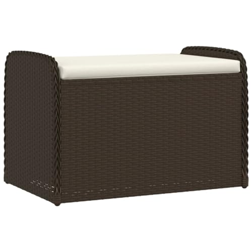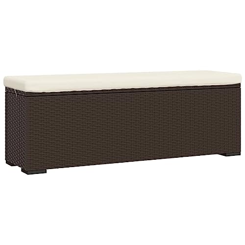 Banc de Rangement Extérieur Marron avec Coussin Tressé