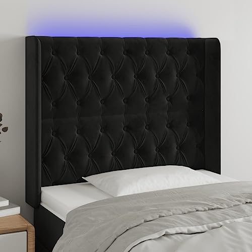 Junzaï Tête de lit LED Noir 103x16x118/128 cm Velours Coussi...
