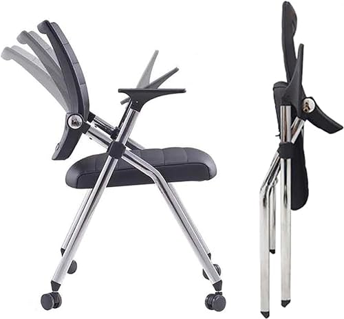 Chaise bureau pliable noire ergonomique avec coussin et roul...